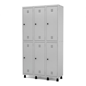Roupeiro de aço com 06 portas grandes, medindo 1.98 x 1.04 x 0.40m (alt x larg x prof) com sistema de pitão para cadeado, pintura eletrostática na cor cinza.