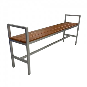 Banco para vestiário com 03 ripas de madeira natural, estrutura de pés em aço com pintura epóxi com apoio lateral – Medindo 1000 x 300mm / 1500 x 750mm / 2000 x 750mm. Base disponível nas cores: PRETA / BRANCA / CINZA.