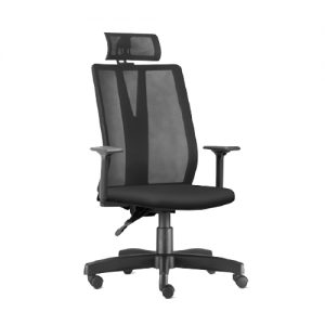 Poltrona giratória presidente, confeccionada em espuma injetada de alta densidade no assento e encosto em tela sintética com capa de proteção e ajuste lombar, base em aço com regulagem de altura a gás e inclinação tipo relax, braços reguláveis, revestimento e cores à definir.