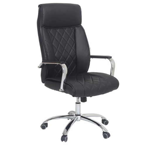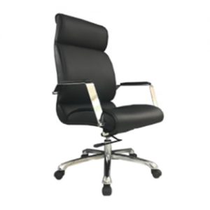 Poltrona giratória presidente, confeccionada em espuma injetada de alta densidade, base em aço cromado com regulagem de altura a gás e inclinação tipo relax, revestimento couro ecológico preto ou bege (padrão).